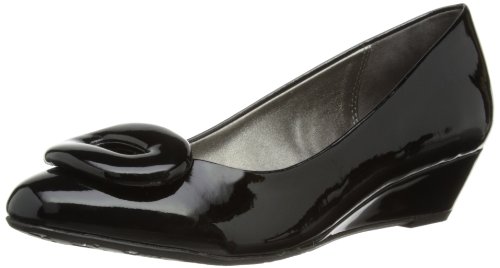 Step out in style this winter with these Lunar Black Wedge Faux Patent Wedge Shoes which feature a Faux Patent Buckle Detail to Front. A fashionable pair for wearing to work and for formal occasions.