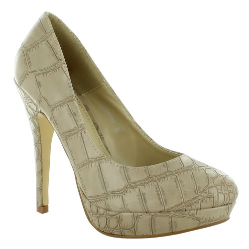 Best Seller! New Ladies Black Stiletto High Heel Platform Classic Court Shoes Size UK 3 4 5 6 8, Nude Size UK 6 Review