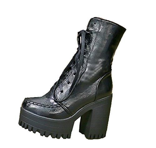 Best Seller! Three's Ladies Platform Heel Ankle Boots Lace Up Chunky Heel Sexy Biker Combat Boots (6, black) Review